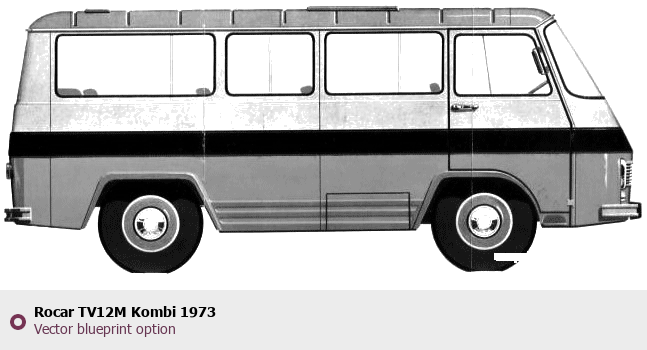 Raster blueprint of the 1973 Rocar TV12M Kombi Hatchback. This free downloadable image can be used for graphic projects, digital design, and 3D modeling. The file provides accurate exterior proportions of the vehicle. Model year: 1973. Body type: Hatchback.