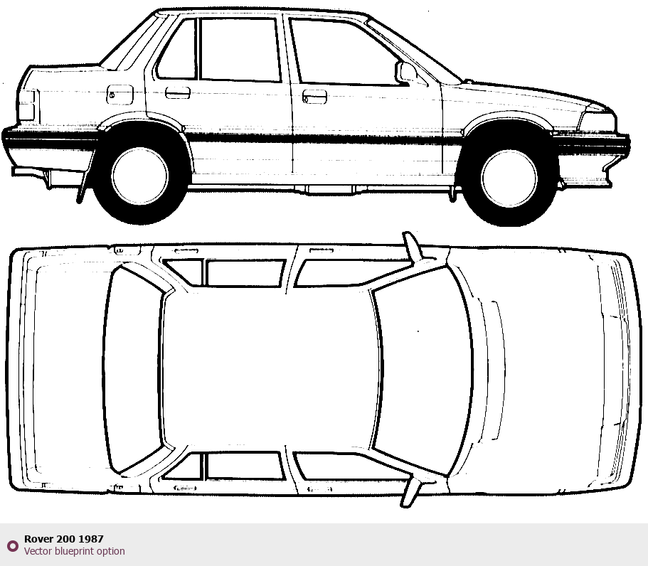 Raster blueprint of the 1987 Rover 200 Tag. This free downloadable image can be used for graphic projects, digital design, and 3D modeling. The file provides accurate exterior proportions of the vehicle. Model year: 1987. Body type: Tag.