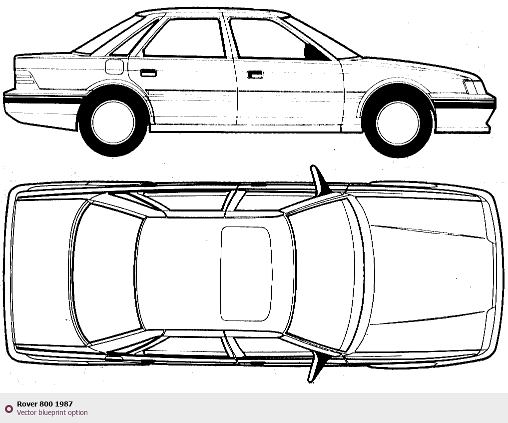 Raster blueprint of the 1987 Rover 800 Tag. This free downloadable image can be used for graphic projects, digital design, and 3D modeling. The file provides accurate exterior proportions of the vehicle. Model year: 1987. Body type: Tag.