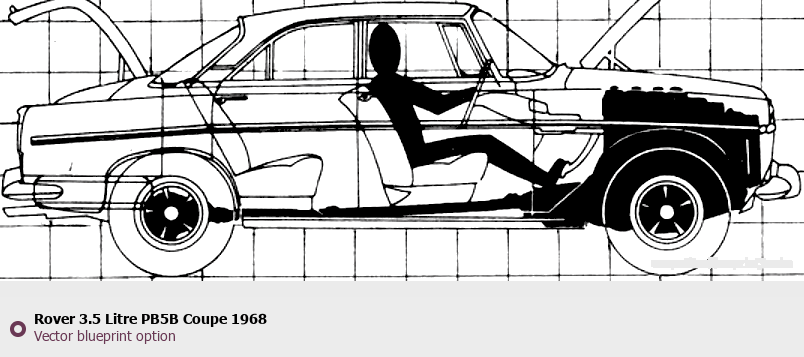 Raster blueprint of the 1968 Rover 3.5 Litre PB5B Coupe Coupe. This free downloadable image can be used for graphic projects, digital design, and 3D modeling. The file provides accurate exterior proportions of the vehicle. Model year: 1968. Body type: Coupe.