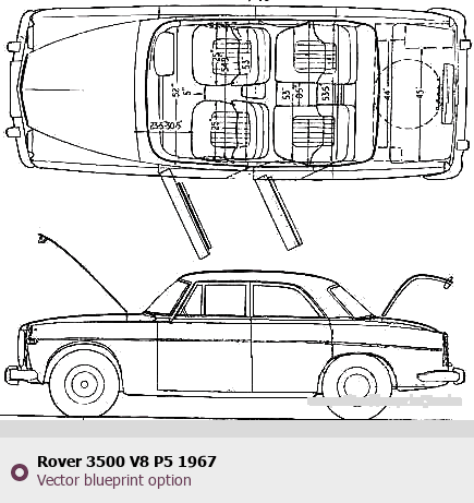 Raster blueprint of the 1967 Rover 3500 V8 P5 Tag. This free downloadable image can be used for graphic projects, digital design, and 3D modeling. The file provides accurate exterior proportions of the vehicle. Model year: 1967. Body type: Tag.