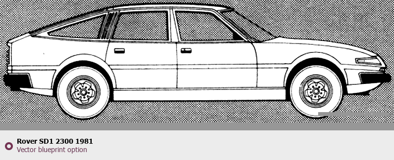 Raster blueprint of the 1981 Rover SD1 2300 Tag. This free downloadable image can be used for graphic projects, digital design, and 3D modeling. The file provides accurate exterior proportions of the vehicle. Model year: 1981. Body type: Tag.