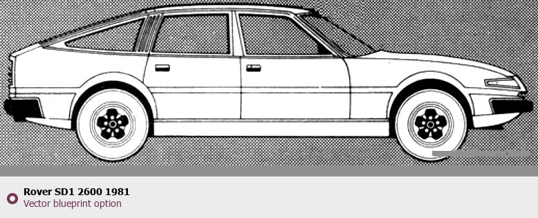 Raster blueprint of the 1981 Rover SD1 2600 Sedan. This free downloadable image can be used for graphic projects, digital design, and 3D modeling. The file provides accurate exterior proportions of the vehicle. Model year: 1981. Body type: Sedan.