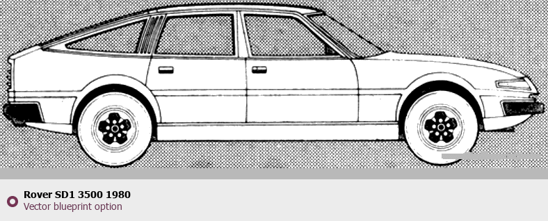 Raster blueprint of the 1980 Rover SD1 3500 Tag. This free downloadable image can be used for graphic projects, digital design, and 3D modeling. The file provides accurate exterior proportions of the vehicle. Model year: 1980. Body type: Tag.