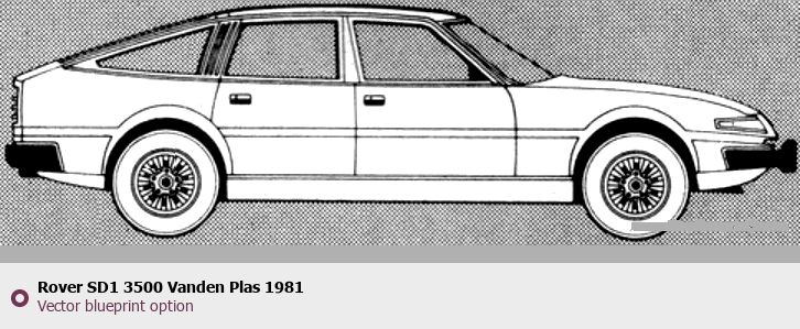 Raster blueprint of the 1981 Rover SD1 3500 Vanden Plas Tag. This free downloadable image can be used for graphic projects, digital design, and 3D modeling. The file provides accurate exterior proportions of the vehicle. Model year: 1981. Body type: Tag.