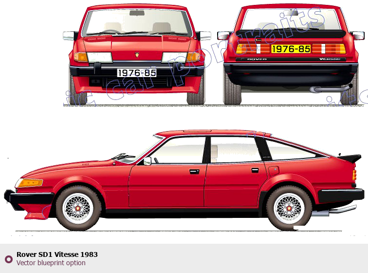 Raster blueprint of the 1983 Rover SD1 Vitesse Tag. This free downloadable image can be used for graphic projects, digital design, and 3D modeling. The file provides accurate exterior proportions of the vehicle. Model year: 1983. Body type: Tag.