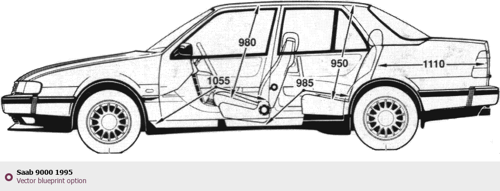 Raster blueprint of the 1995 Saab 9000 Tag. This free downloadable image can be used for graphic projects, digital design, and 3D modeling. The file provides accurate exterior proportions of the vehicle. Model year: 1995. Body type: Tag.