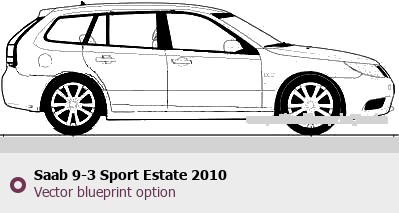 Raster blueprint of the 2010 Saab 9-3 Sport Estate Wagon. This free downloadable image can be used for graphic projects, digital design, and 3D modeling. The file provides accurate exterior proportions of the vehicle. Model year: 2010. Body type: Wagon.