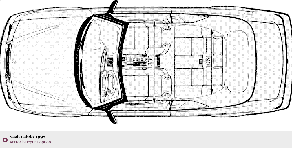 Raster blueprint of the 1995 Saab Cabrio Cabriolet. This free downloadable image can be used for graphic projects, digital design, and 3D modeling. The file provides accurate exterior proportions of the vehicle. Model year: 1995. Body type: Cabriolet.