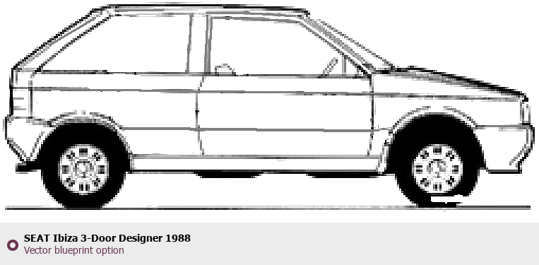 Raster blueprint of the 1988 Seat Ibiza 3-Door Designer Tag. This free downloadable image can be used for graphic projects, digital design, and 3D modeling. The file provides accurate exterior proportions of the vehicle. Model year: 1988. Body type: Tag.
