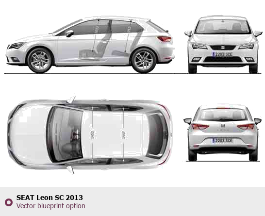 Raster blueprint of the 2013 Seat Leon SC Tag. This free downloadable image can be used for graphic projects, digital design, and 3D modeling. The file provides accurate exterior proportions of the vehicle. Model year: 2013. Body type: Tag.