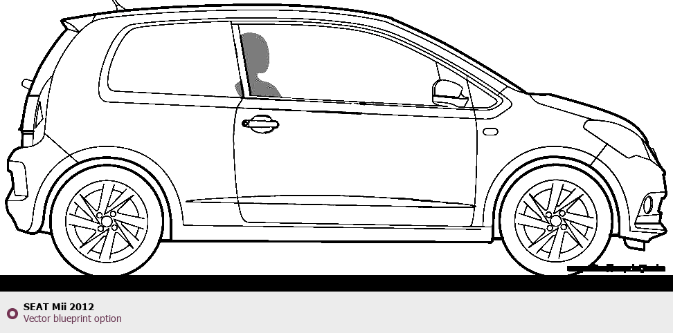 Raster blueprint of the 2012 Seat Mii Tag. This free downloadable image can be used for graphic projects, digital design, and 3D modeling. The file provides accurate exterior proportions of the vehicle. Model year: 2012. Body type: Tag.