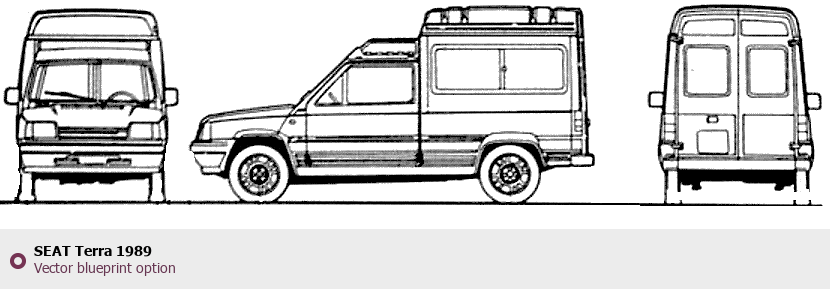 Raster blueprint of the 1989 Seat Terra Tag. This free downloadable image can be used for graphic projects, digital design, and 3D modeling. The file provides accurate exterior proportions of the vehicle. Model year: 1989. Body type: Tag.