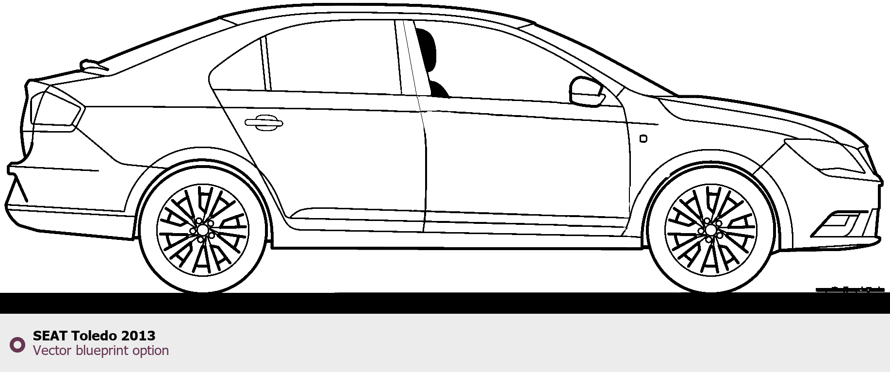 Raster blueprint of the 2013 Seat Toledo Tag. This free downloadable image can be used for graphic projects, digital design, and 3D modeling. The file provides accurate exterior proportions of the vehicle. Model year: 2013. Body type: Tag.