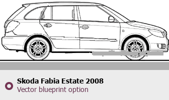 Raster blueprint of the 2008 Skoda Fabia Estate Wagon. This free downloadable image can be used for graphic projects, digital design, and 3D modeling. The file provides accurate exterior proportions of the vehicle. Model year: 2008. Body type: Wagon.