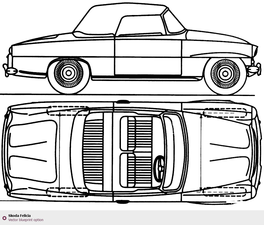 Raster blueprint of the Skoda Felicia Tag. This free downloadable image can be used for graphic projects, digital design, and 3D modeling. The file provides accurate exterior proportions of the vehicle. Body type: Tag.