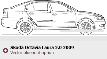 Raster blueprint of the 2009 Skoda Octavia Laura 2.0 Tag. This free downloadable image can be used for graphic projects, digital design, and 3D modeling. The file provides accurate exterior proportions of the vehicle. Model year: 2009. Body type: Tag.