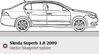 Raster blueprint of the 2009 Skoda Superb 1.8 Tag. This free downloadable image can be used for graphic projects, digital design, and 3D modeling. The file provides accurate exterior proportions of the vehicle. Model year: 2009. Body type: Tag.
