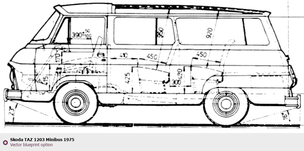 Raster blueprint of the 1975 Skoda TAZ 1203 Minibus Hatchback. This free downloadable image can be used for graphic projects, digital design, and 3D modeling. The file provides accurate exterior proportions of the vehicle. Model year: 1975. Body type: Hatchback.