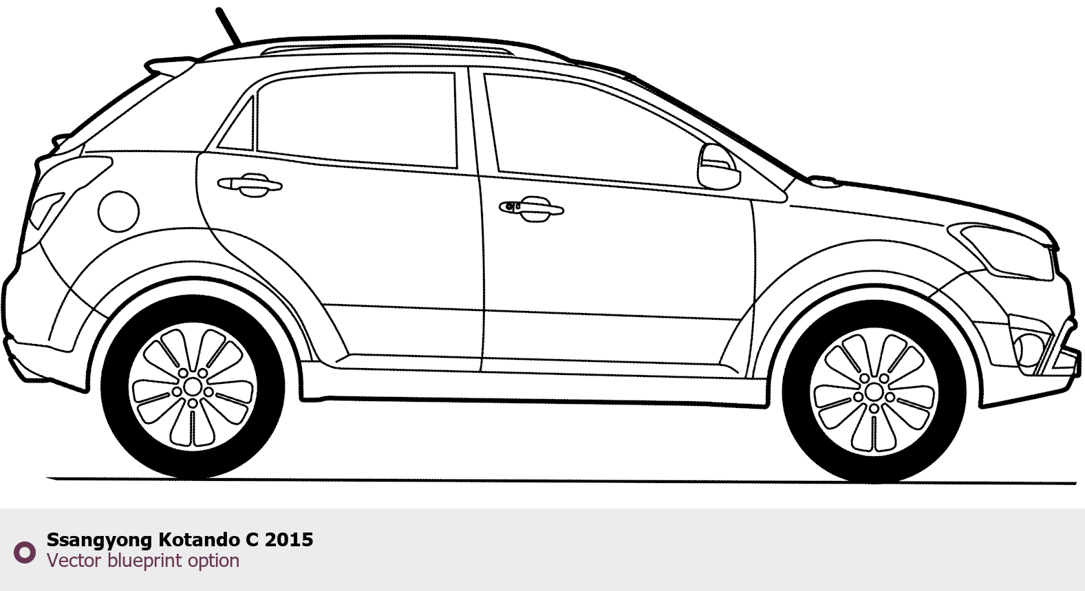 Raster blueprint of the 2015 SsangYong Kotando C Tag. This free downloadable image can be used for graphic projects, digital design, and 3D modeling. The file provides accurate exterior proportions of the vehicle. Model year: 2015. Body type: Tag.