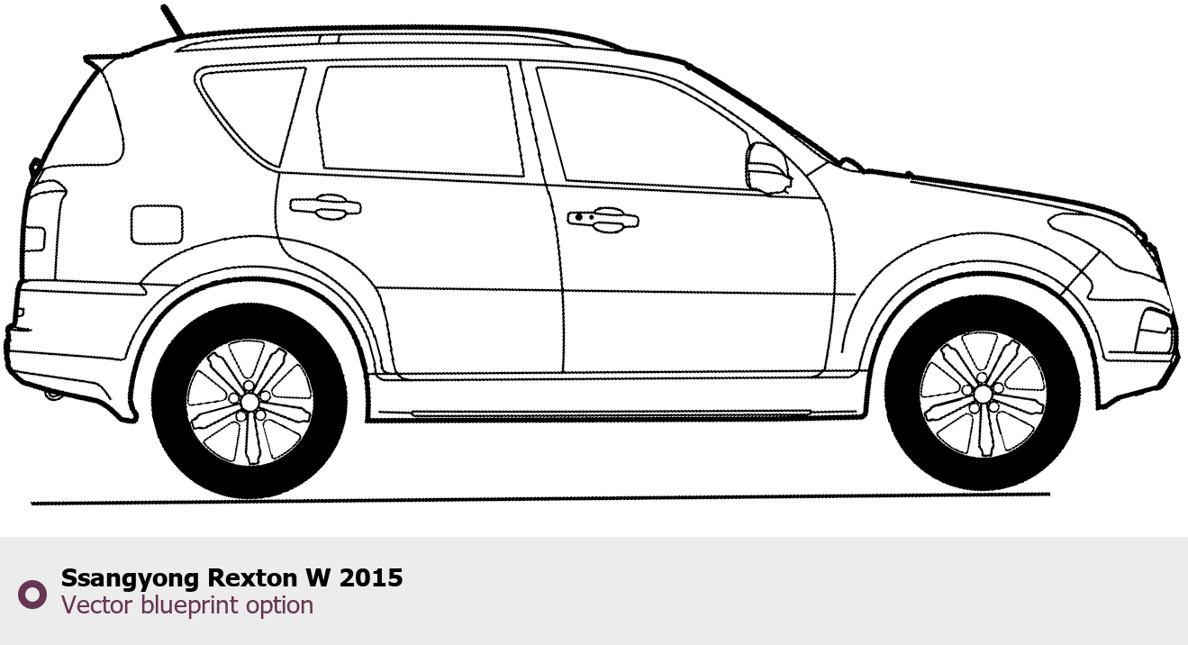 Raster blueprint of the 2015 SsangYong Rexton W Tag. This free downloadable image can be used for graphic projects, digital design, and 3D modeling. The file provides accurate exterior proportions of the vehicle. Model year: 2015. Body type: Tag.