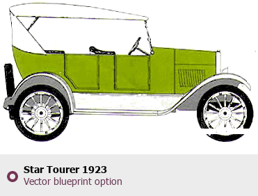 Raster blueprint of the 1923 Star Tourer Tag. This free downloadable image can be used for graphic projects, digital design, and 3D modeling. The file provides accurate exterior proportions of the vehicle. Model year: 1923. Body type: Tag.