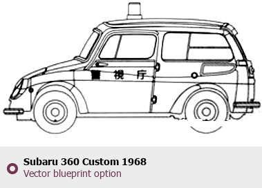Raster blueprint of the 1968 Subaru 360 Custom Tag. This free downloadable image can be used for graphic projects, digital design, and 3D modeling. The file provides accurate exterior proportions of the vehicle. Model year: 1968. Body type: Tag.