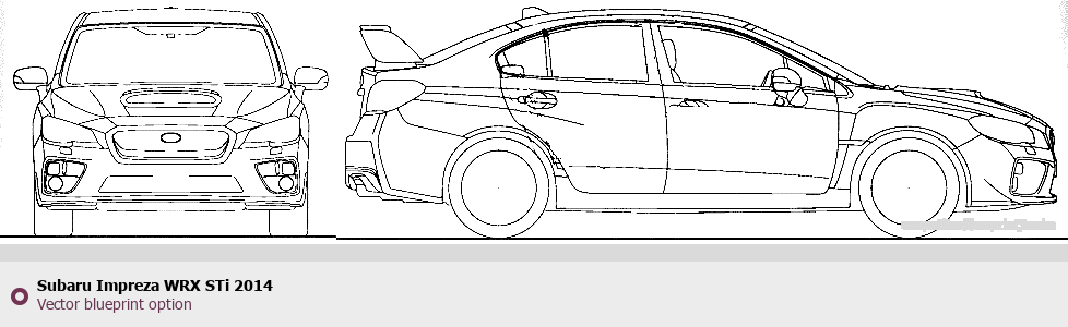 Raster blueprint of the 2014 Subaru Impreza WRX STi Tag. This free downloadable image can be used for graphic projects, digital design, and 3D modeling. The file provides accurate exterior proportions of the vehicle. Model year: 2014. Body type: Tag.