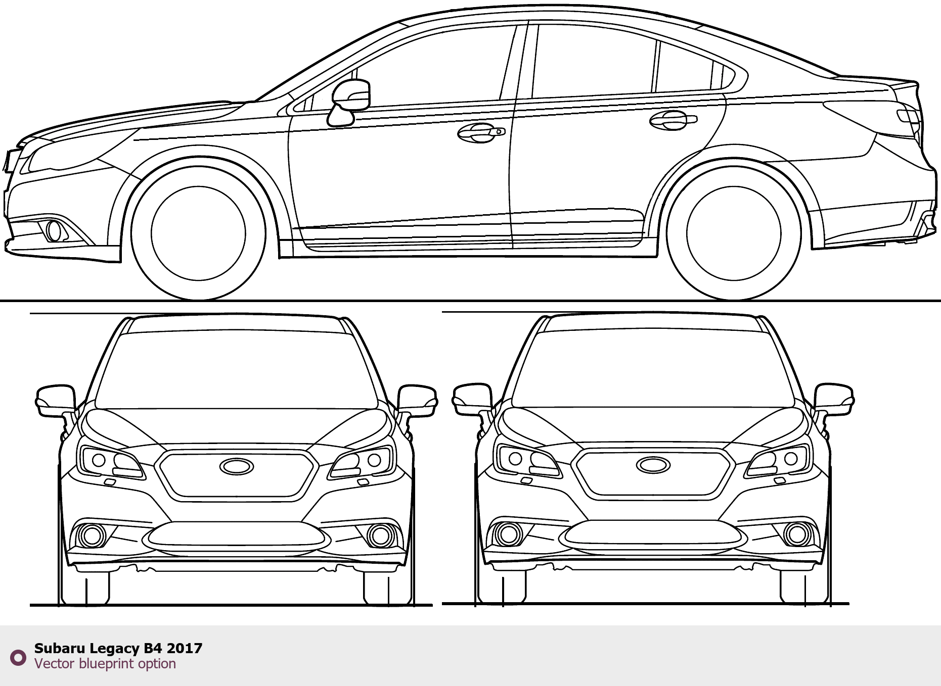 Raster blueprint of the 2017 Subaru Legacy B4 Tag. This free downloadable image can be used for graphic projects, digital design, and 3D modeling. The file provides accurate exterior proportions of the vehicle. Model year: 2017. Body type: Tag.
