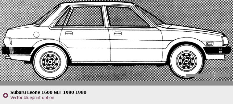 Raster blueprint of the 1980 Subaru Leone 1600 GLF 1980 Tag. This free downloadable image can be used for graphic projects, digital design, and 3D modeling. The file provides accurate exterior proportions of the vehicle. Model year: 1980. Body type: Tag.