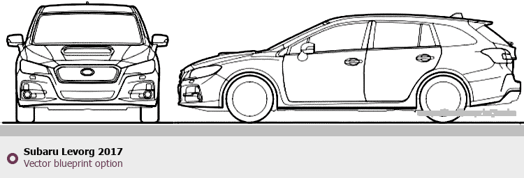 Raster blueprint of the 2017 Subaru Levorg Wagon. This free downloadable image can be used for graphic projects, digital design, and 3D modeling. The file provides accurate exterior proportions of the vehicle. Model year: 2017. Body type: Wagon.