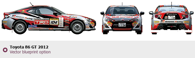 Raster blueprint of the 2012 Toyota 86 GT Coupe. This free downloadable image can be used for graphic projects, digital design, and 3D modeling. The file provides accurate exterior proportions of the vehicle. Model year: 2012. Body type: Coupe.