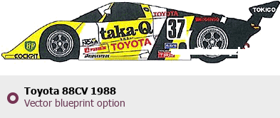 Raster blueprint of the 1988 Toyota 88CV Tag. This free downloadable image can be used for graphic projects, digital design, and 3D modeling. The file provides accurate exterior proportions of the vehicle. Model year: 1988. Body type: Tag.