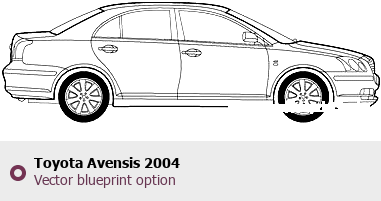 Raster blueprint of the 2004 Toyota Avensis Tag. This free downloadable image can be used for graphic projects, digital design, and 3D modeling. The file provides accurate exterior proportions of the vehicle. Model year: 2004. Body type: Tag.