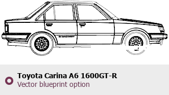 Raster blueprint of the 1981 Toyota Carina A6 1600GT-R Tag. This free downloadable image can be used for graphic projects, digital design, and 3D modeling. The file provides accurate exterior proportions of the vehicle. Model year: 1981. Body type: Tag.