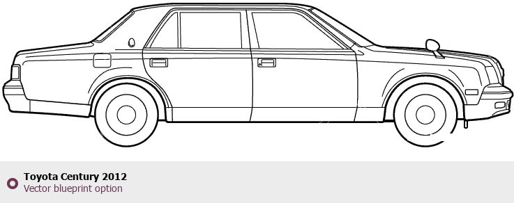 Raster blueprint of the 2012 Toyota Century Limousine. This free downloadable image can be used for graphic projects, digital design, and 3D modeling. The file provides accurate exterior proportions of the vehicle. Model year: 2012. Body type: Limousine.