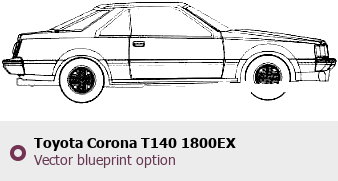 Raster blueprint of the 1983 Toyota Corona T140 1800EX Tag. This free downloadable image can be used for graphic projects, digital design, and 3D modeling. The file provides accurate exterior proportions of the vehicle. Model year: 1983. Body type: Tag.