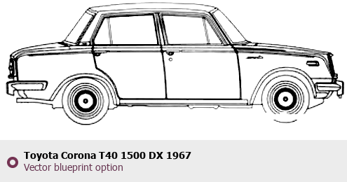 Raster blueprint of the 1967 Toyota Corona T40 1500 DX Tag. This free downloadable image can be used for graphic projects, digital design, and 3D modeling. The file provides accurate exterior proportions of the vehicle. Model year: 1967. Body type: Tag.