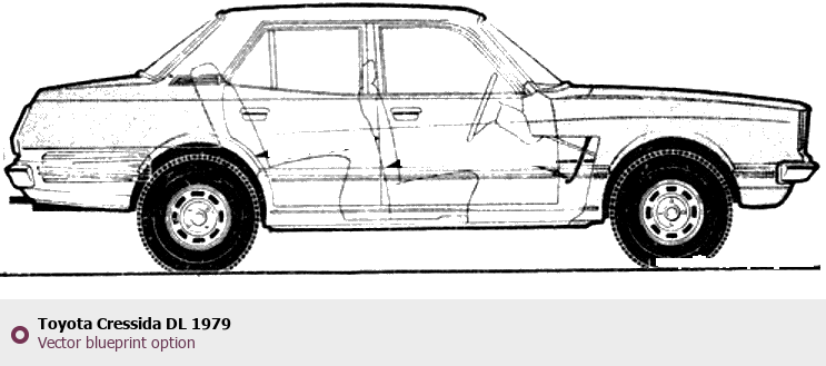 Raster blueprint of the 1979 Toyota Cressida DL Tag. This free downloadable image can be used for graphic projects, digital design, and 3D modeling. The file provides accurate exterior proportions of the vehicle. Model year: 1979. Body type: Tag.