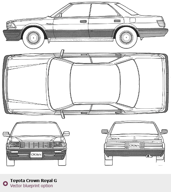 Raster blueprint of the Toyota Crown Royal G Tag. This free downloadable image can be used for graphic projects, digital design, and 3D modeling. The file provides accurate exterior proportions of the vehicle. Body type: Tag.