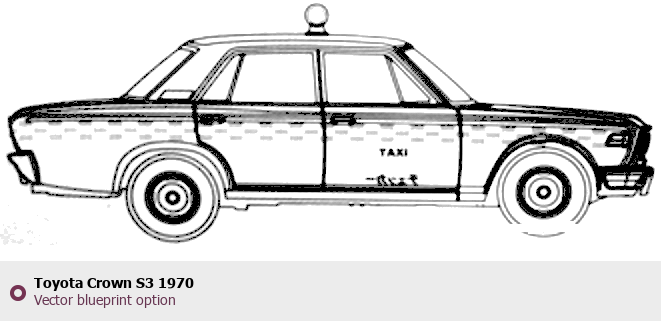 Raster blueprint of the 1970 Toyota Crown S3 Tag. This free downloadable image can be used for graphic projects, digital design, and 3D modeling. The file provides accurate exterior proportions of the vehicle. Model year: 1970. Body type: Tag.