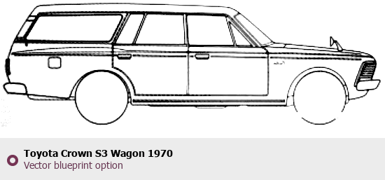 Raster blueprint of the 1970 Toyota Crown S3 Wagon Wagon. This free downloadable image can be used for graphic projects, digital design, and 3D modeling. The file provides accurate exterior proportions of the vehicle. Model year: 1970. Body type: Wagon.