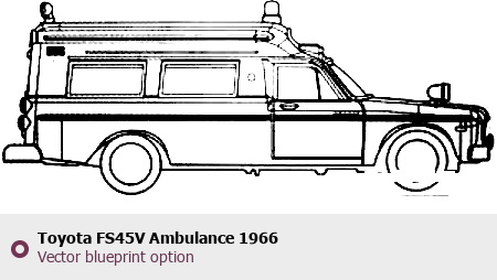 Raster blueprint of the 1966 Toyota FS45V Ambulance Tag. This free downloadable image can be used for graphic projects, digital design, and 3D modeling. The file provides accurate exterior proportions of the vehicle. Model year: 1966. Body type: Tag.