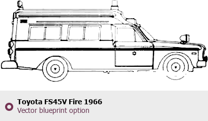 Raster blueprint of the 1966 Toyota FS45V Fire Tag. This free downloadable image can be used for graphic projects, digital design, and 3D modeling. The file provides accurate exterior proportions of the vehicle. Model year: 1966. Body type: Tag.