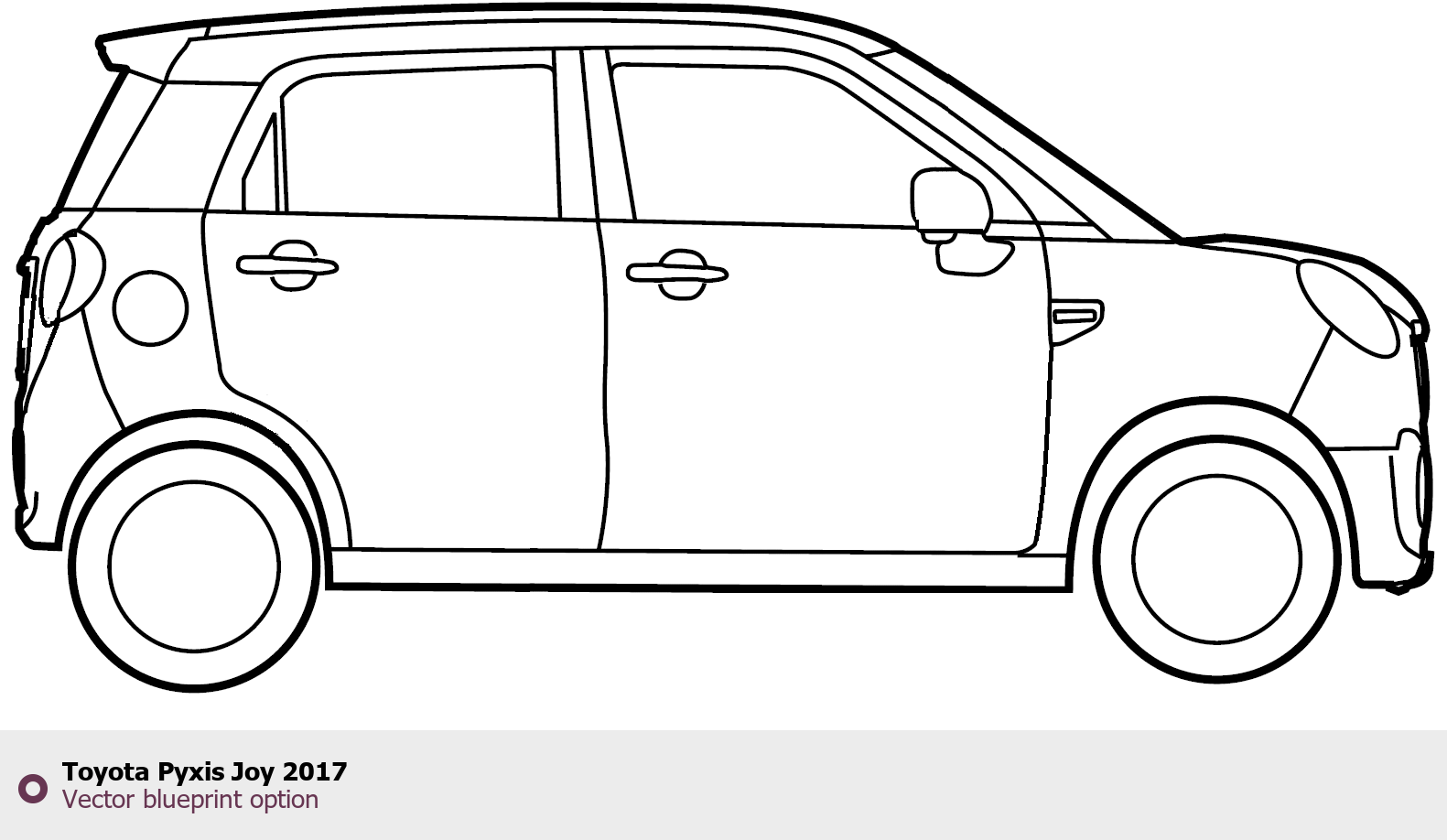 Raster blueprint of the 2017 Toyota Pyxis Joy Tag. This free downloadable image can be used for graphic projects, digital design, and 3D modeling. The file provides accurate exterior proportions of the vehicle. Model year: 2017. Body type: Tag.