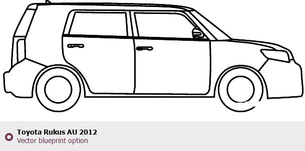 Raster blueprint of the 2012 Toyota Rukus AU Hatchback. This free downloadable image can be used for graphic projects, digital design, and 3D modeling. The file provides accurate exterior proportions of the vehicle. Model year: 2012. Body type: Hatchback.