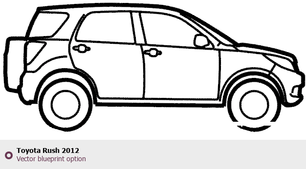 Raster blueprint of the 2012 Toyota Rush SUV. This free downloadable image can be used for graphic projects, digital design, and 3D modeling. The file provides accurate exterior proportions of the vehicle. Model year: 2012. Body type: SUV.