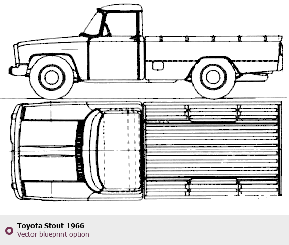 Raster blueprint of the 1966 Toyota Stout Tag. This free downloadable image can be used for graphic projects, digital design, and 3D modeling. The file provides accurate exterior proportions of the vehicle. Model year: 1966. Body type: Tag.