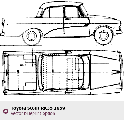 Raster blueprint of the 1959 Toyota Stout RK35 Tag. This free downloadable image can be used for graphic projects, digital design, and 3D modeling. The file provides accurate exterior proportions of the vehicle. Model year: 1959. Body type: Tag.