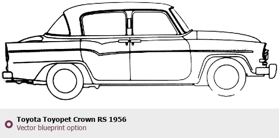 Raster blueprint of the 1956 Toyota Toyopet Crown RS Tag. This free downloadable image can be used for graphic projects, digital design, and 3D modeling. The file provides accurate exterior proportions of the vehicle. Model year: 1956. Body type: Tag.